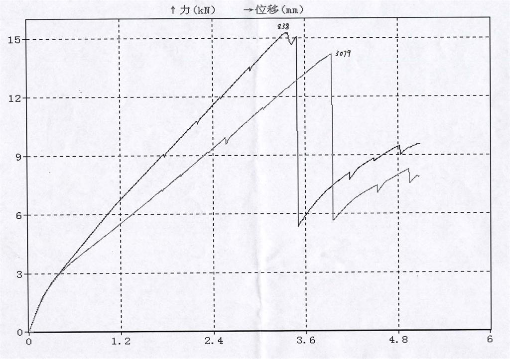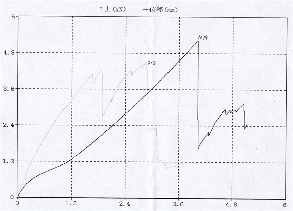 圖8.6.2-2是按行業(yè)標(biāo)準(zhǔn)制作 試樣的Ft-δ曲線,從圖中可以看出,試樣在拉伸過程中有兩次破壞、甚至多次破壞的情況,這說明這類試樣在拉伸過程中其內(nèi)側(cè)首先被拉壞或部分拉壞,承載能力下降,隨變形繼續(xù)增加,繼續(xù)承載,但最大載荷增加不大。